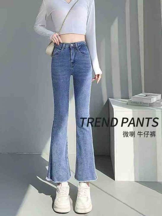 高腰弹力毛边微喇牛仔裤春秋季2026新款显瘦小个子九分马蹄喇叭裤子150件,...