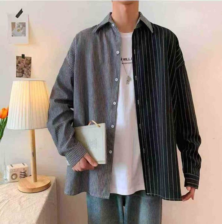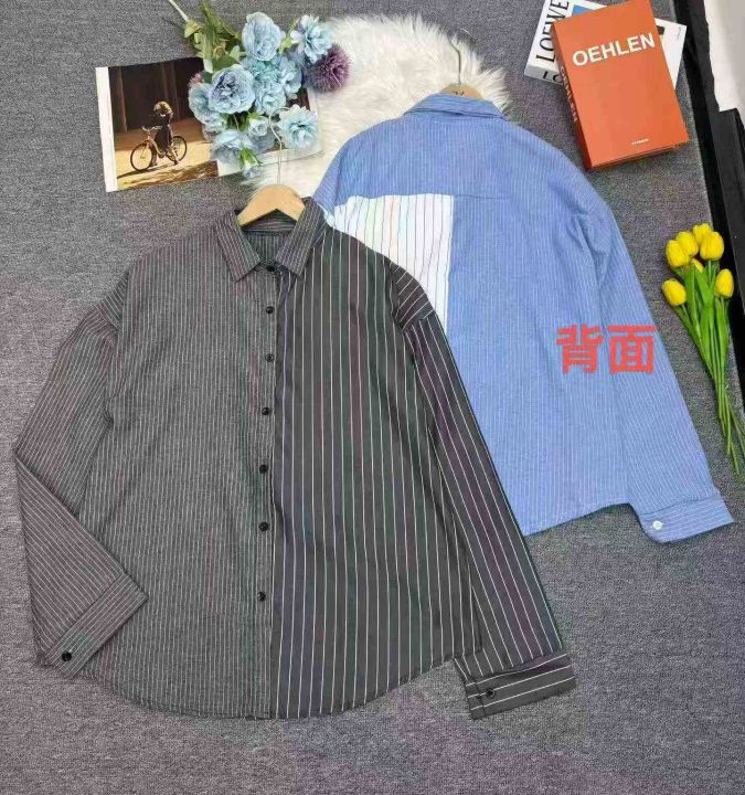 条纹衬衫男韩版宽松潮流百搭帅气衬衣ins 痞帅数量:259件 含十条杂款 码数:2-5码 独立包装(货号404#10)