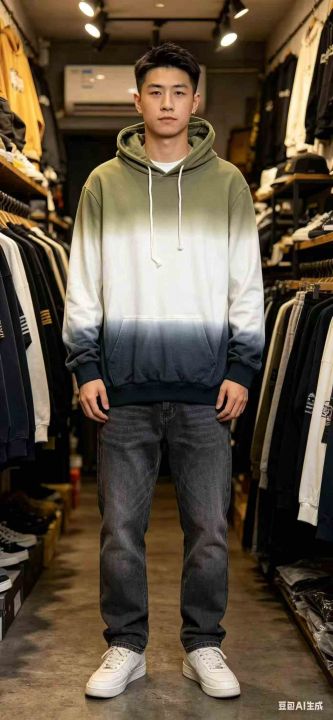 渐变/扎染/连帽卫衣,纯棉毛圈面料,落肩大版宽松卫衣,数量2560件左右,单款多个颜色,码数M-L-XL-XXL-XXXL,独立包装吊牌,分货➕1元/件。