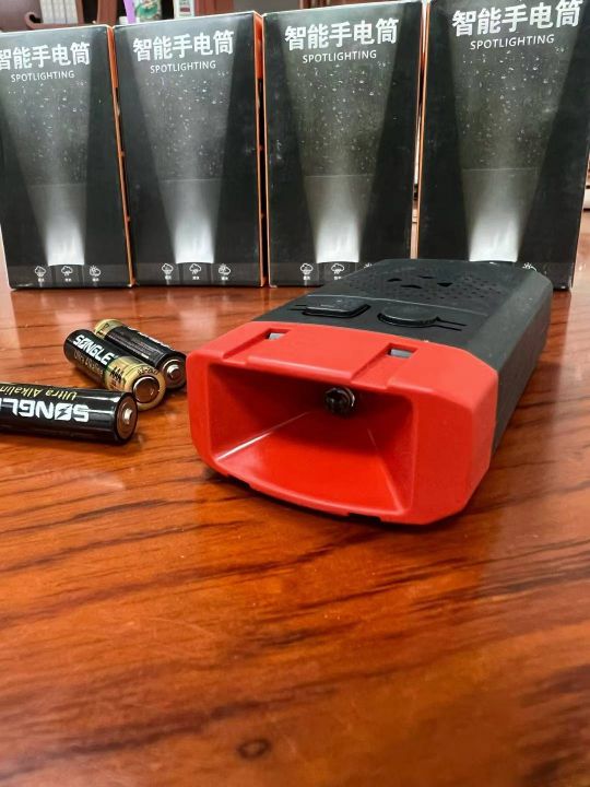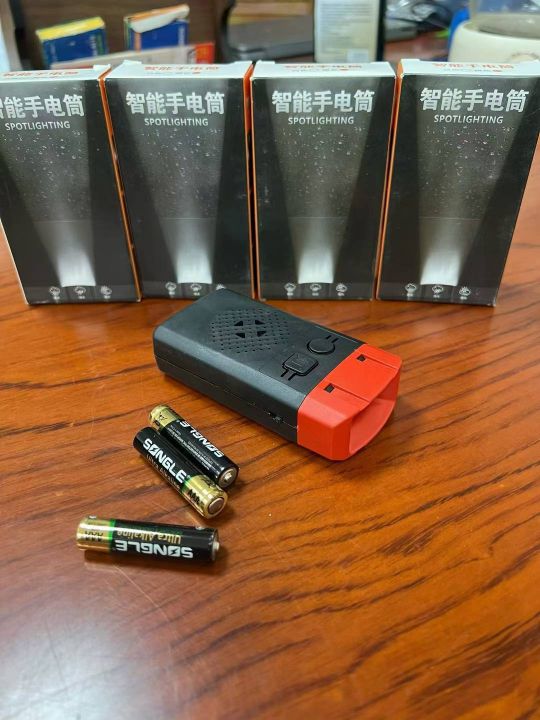 智能手电筒到货3000多个,独立彩盒包装,原箱原件,佩送3支电池,内置喇叭,强光LED,给钱就卖