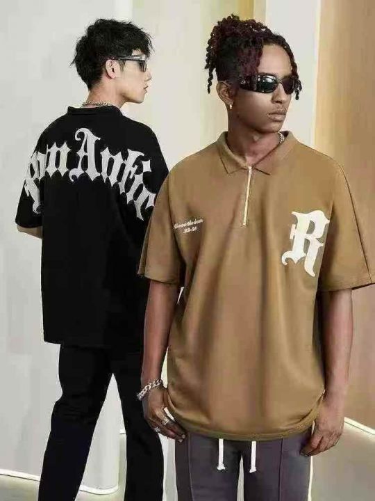 全清价8.9工装半拉链短袖polo衫男宽松美式刺绣翻领T恤,前后重工刺绣工艺,...