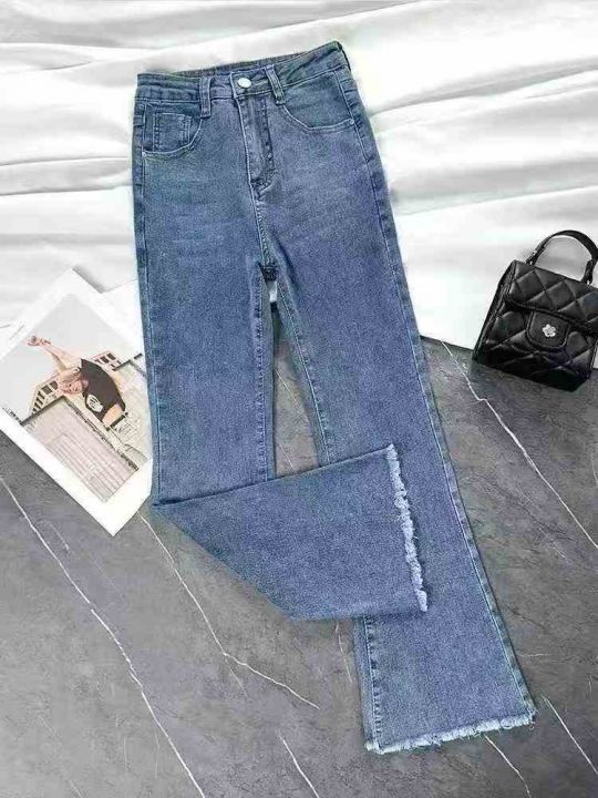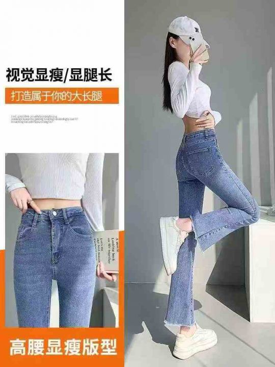 高腰弹力毛边微喇牛仔裤春秋季2026新款显瘦小个子九分马蹄喇叭裤子150件,独立包装带吊牌,尺码S~5XL,全清福利价8.8元