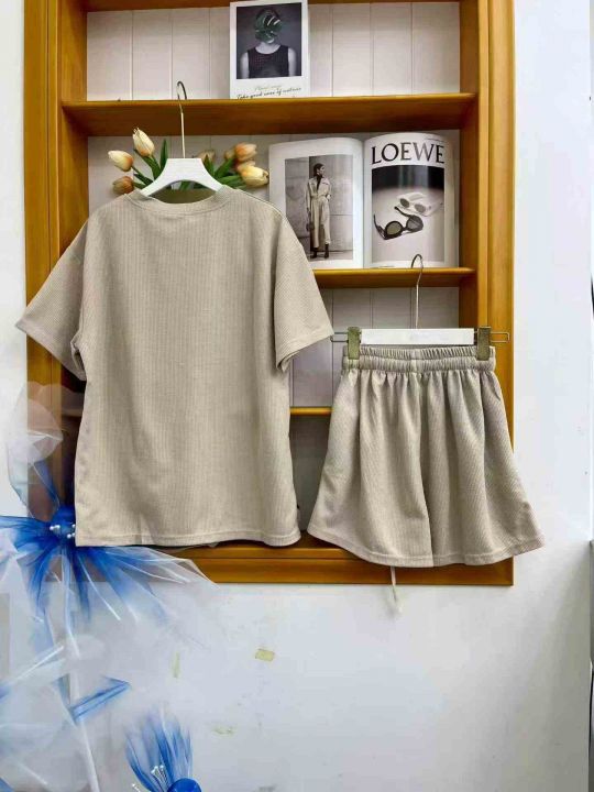 全清价9.5高级感短袖短裤两件套女士夏季大码欧货时尚洋气休闲穿搭套装,独...