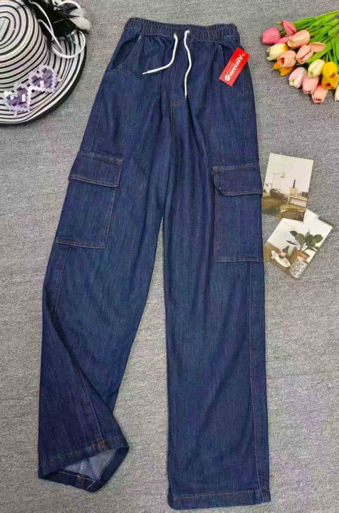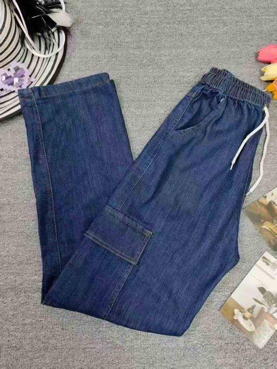 美式复古多口袋工装牛仔裤女高腰宽松阔腿裤子,单款5色,独立包装带腰牌,5...