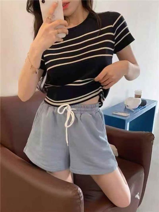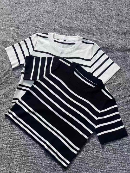 450件靓女条纹针织短袖T恤,夏季薄款,冰丝面料,穿着...