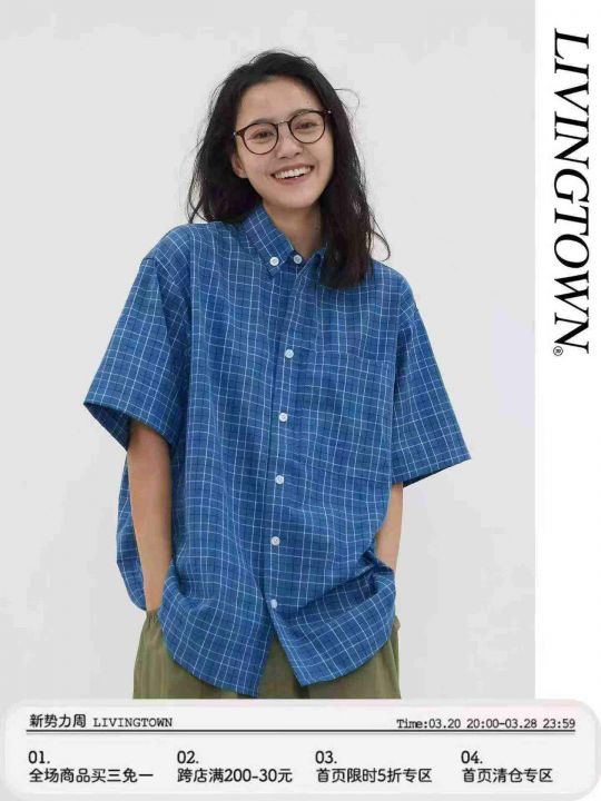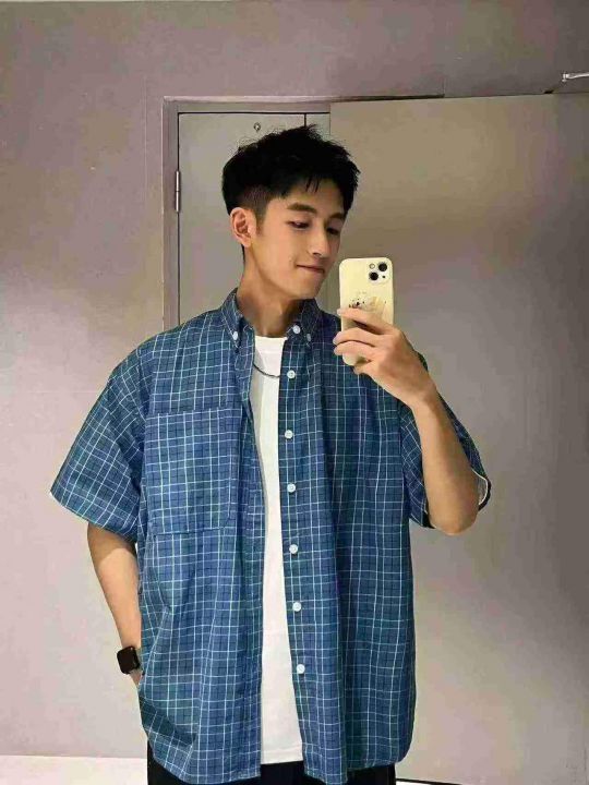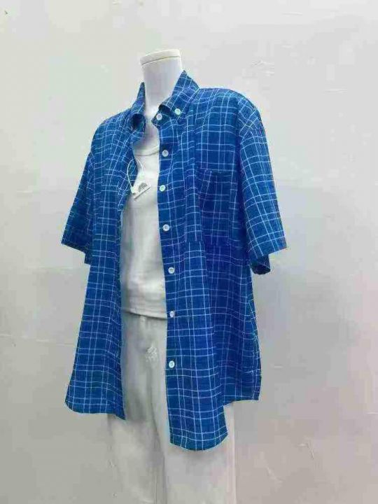 情侣格子衬衫46件6.9,情侣宽松版,领子带纽扣,有口...