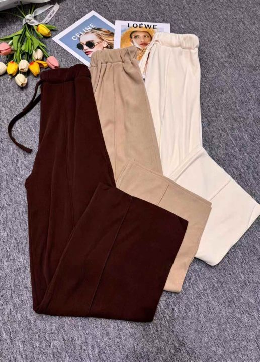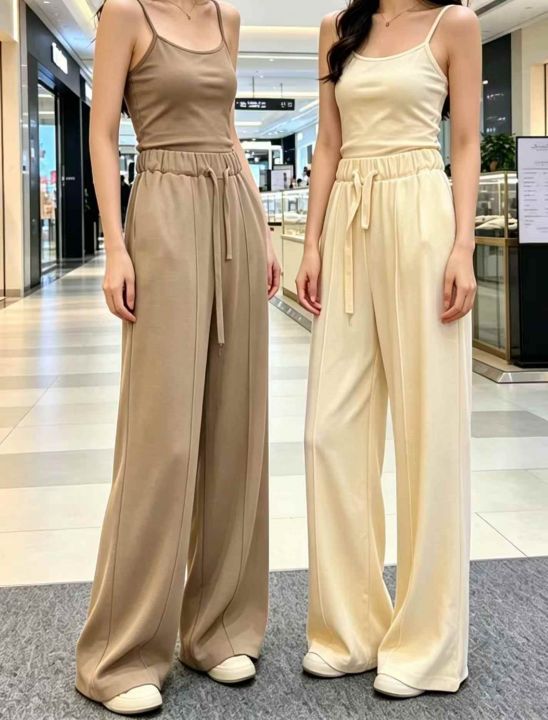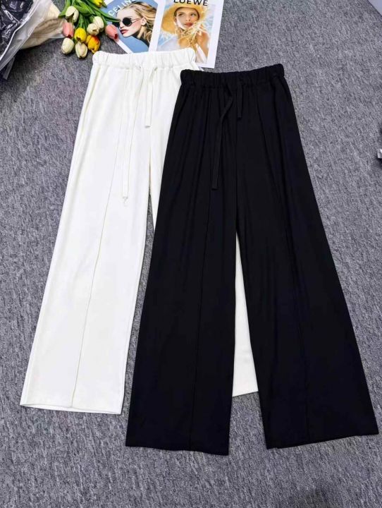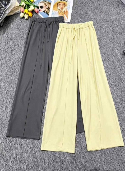 米尼柔软薄款高弹力阔腿直筒休闲裤,