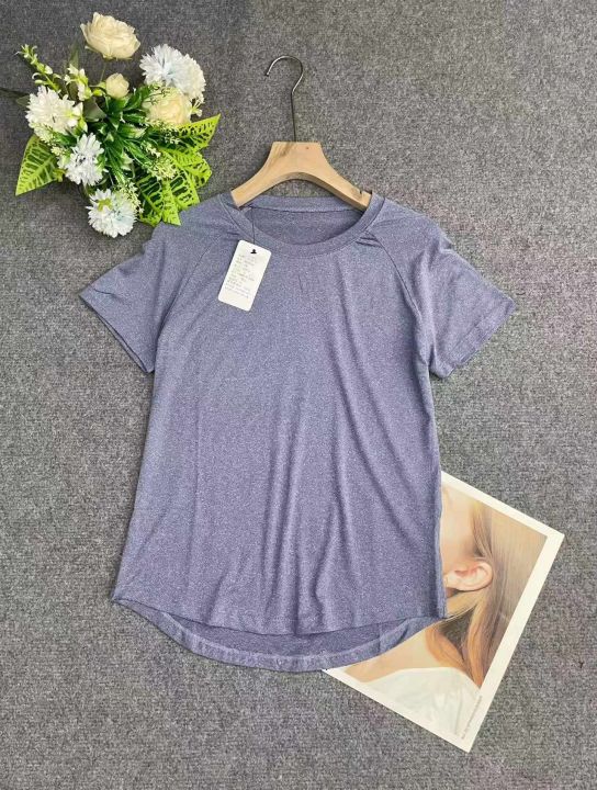 1124件运动健身速干瑜珈短袖。下摆不规则设计,面料柔软舒适,高弹力,品质好。S 一2XL,独立包装带吊牌,全清2.9