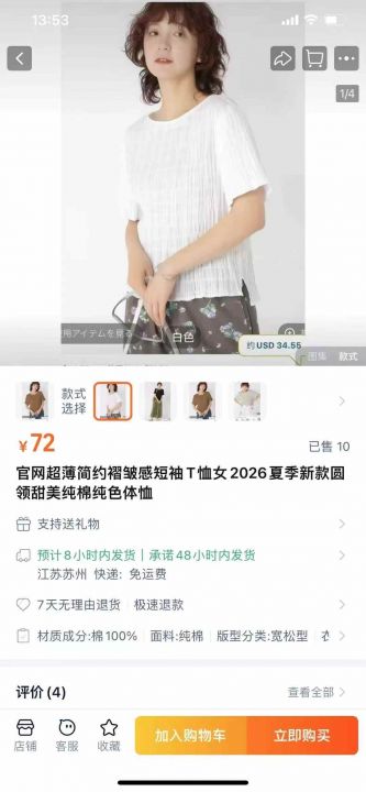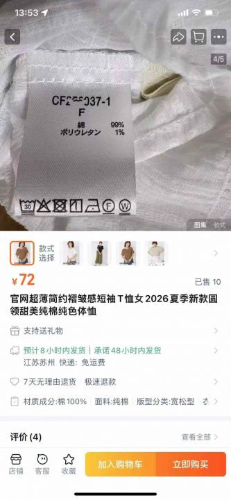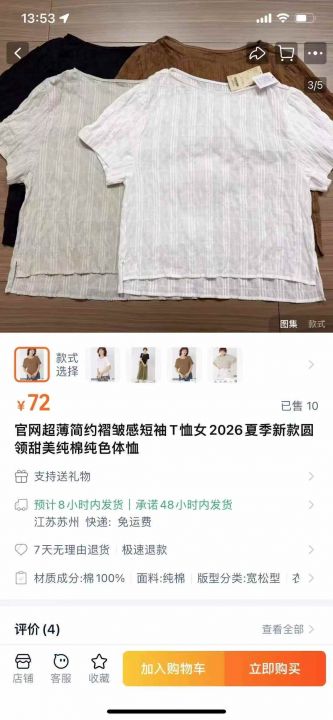 [跳跳][跳跳]¥9.8日单超薄简约褶皱感纯棉短袖小衫 2026年新款2600件 4个颜色 F码均码,质量扛扛的[玫瑰]毛桃官网在受