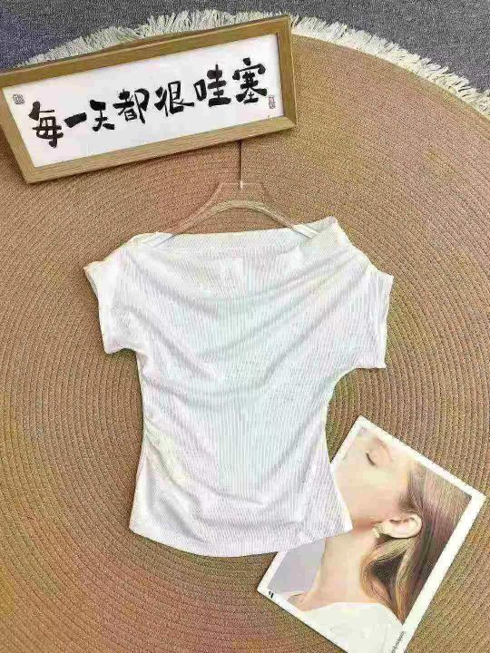 法式设计感一字肩斜肩上衣259件6.5,面料柔软有弹力,...