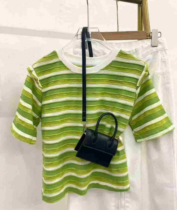 肌理感条纹短袖301件7.8,面料柔软舒适,后领包边到肩...