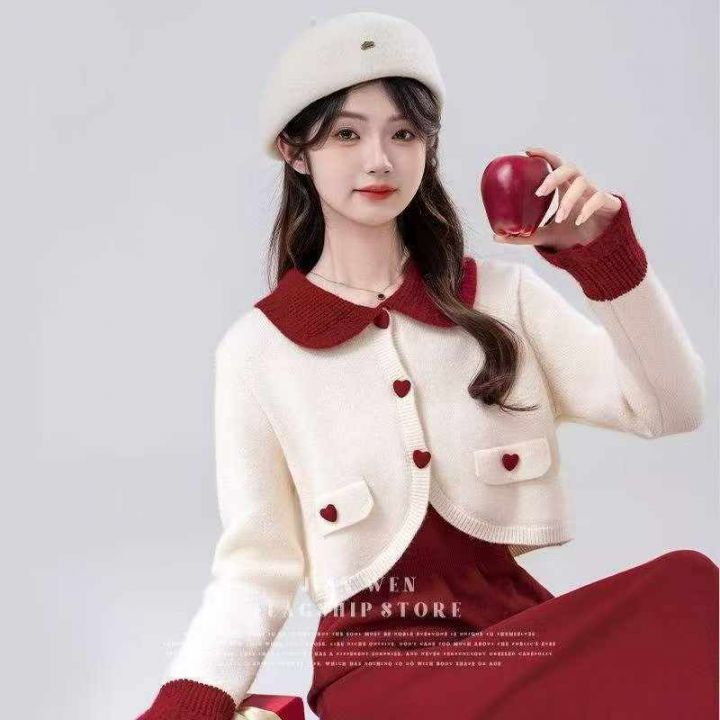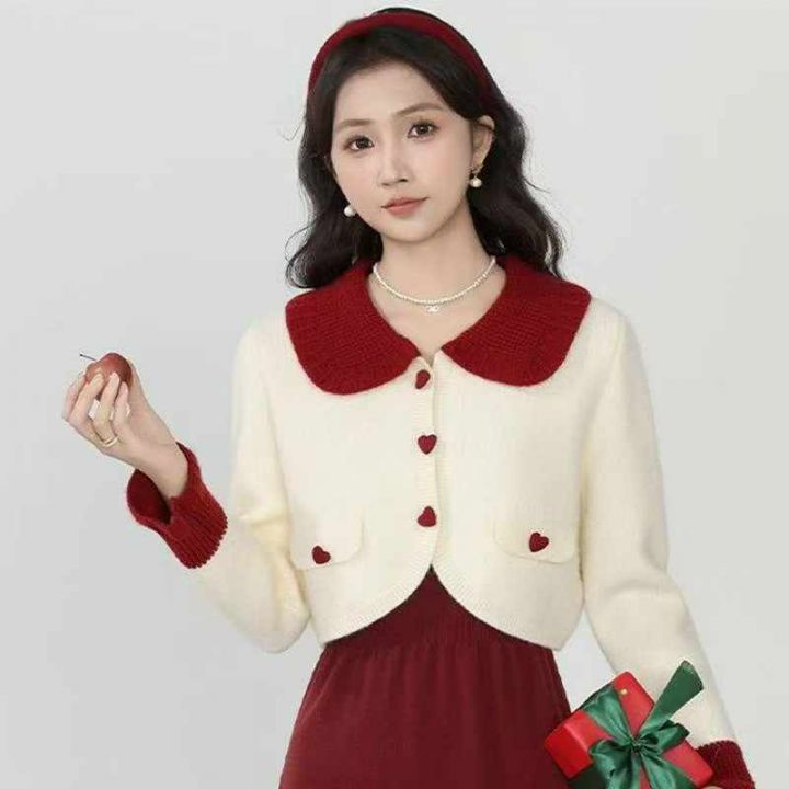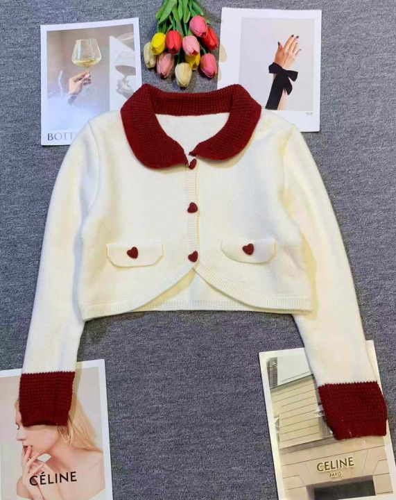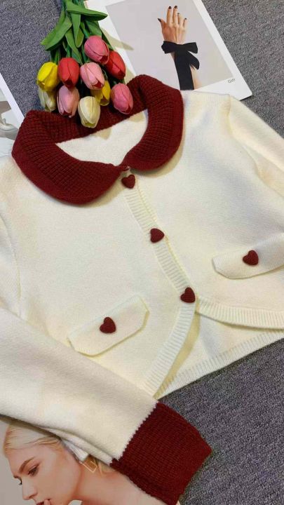初恋感娃娃领撞色拼接设计开衫毛衣,[爱心]215件左右,款号#1255,均码,穿70-130斤,万佳档口货,原包装️无瑕疵,[666]实体店品质,分货加一