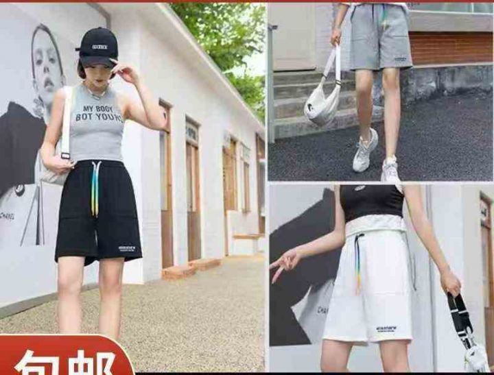 潮流字母刺绣纯棉女士运动休闲松紧腰短裤单款三个色1-5码120条独立包装全清...