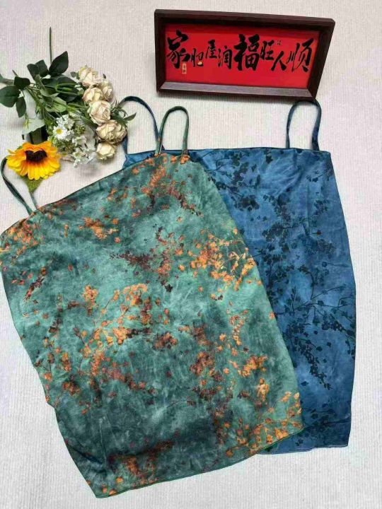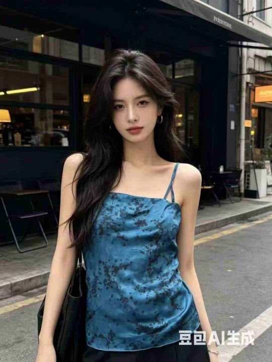 新中式高端缎面印花性感女款吊带打底背心.单款两个色...