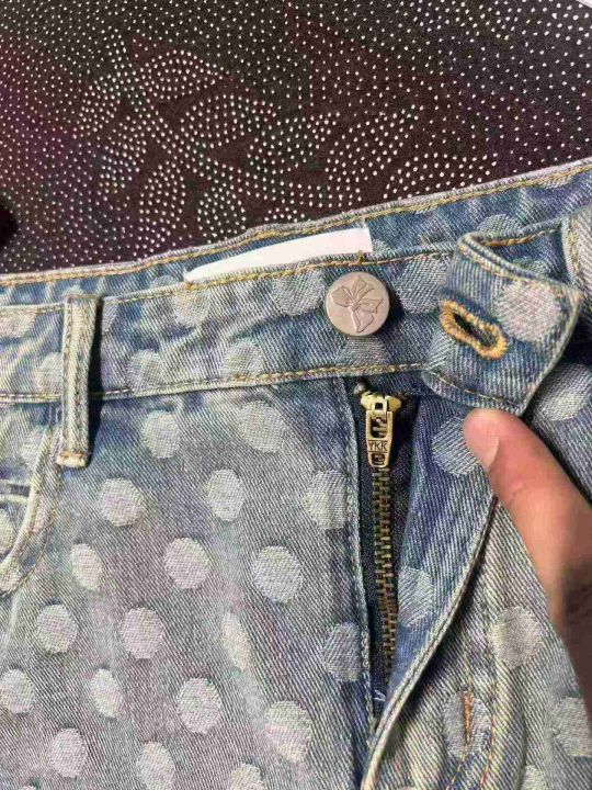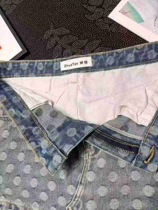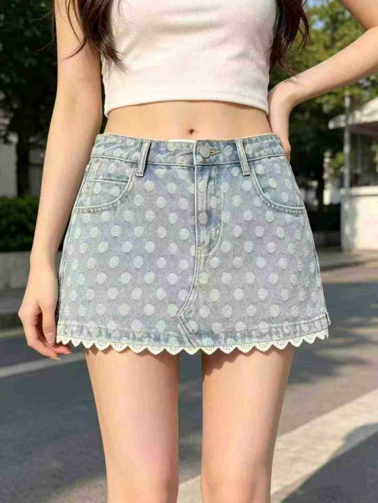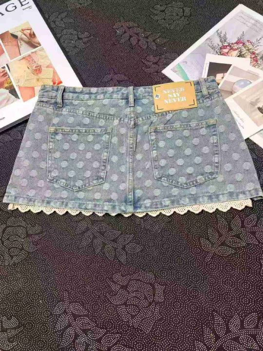 辣妹波点蕾丝花边带内衬牛仔短裙 101件,全清9.8元,...