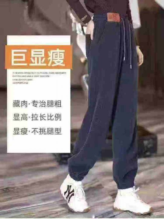 薄款灯芯绒束脚裤,竖条纹理细腻有质感,柔软垂顺不扎...