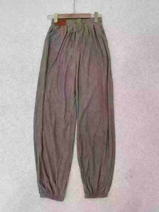 薄款灯芯绒束脚裤,竖条纹理细腻有质感,柔软垂顺不扎肤。有抽绳带口袋,独立包装,码段2-4-6(M-L-XL)