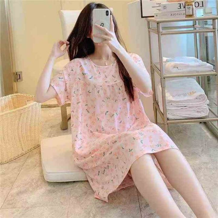 新款棉感睡裙女夏季短袖宽松款睡衣卡通甜美长裙家居服,独立包装,S -4 xl码,690件左右,全清5.8