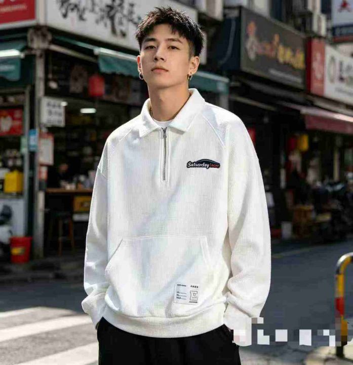 美式慵懒学院风半拉链Polo领男女同款卫衣·单款单色100件1-3码独立包装全清...