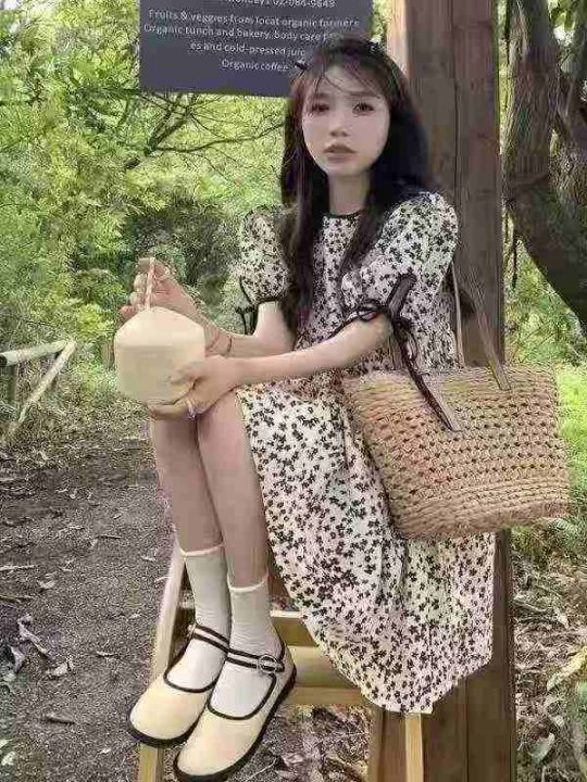 女装设计感泡泡袖碎花连衣裙,243件,1.2.3码,独立包装,全清5.9元...