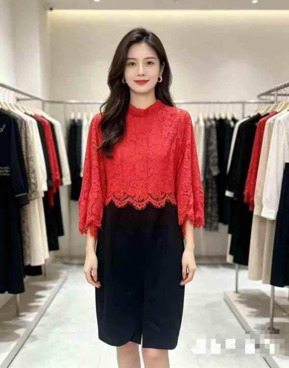 140件左右气质修身拼接蕾丝连衣裙,蝙蝠袖,尺码M-2XL...