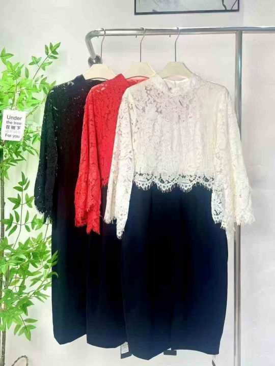 140件左右气质修身拼接蕾丝连衣裙,蝙蝠袖,尺码M-2XL...