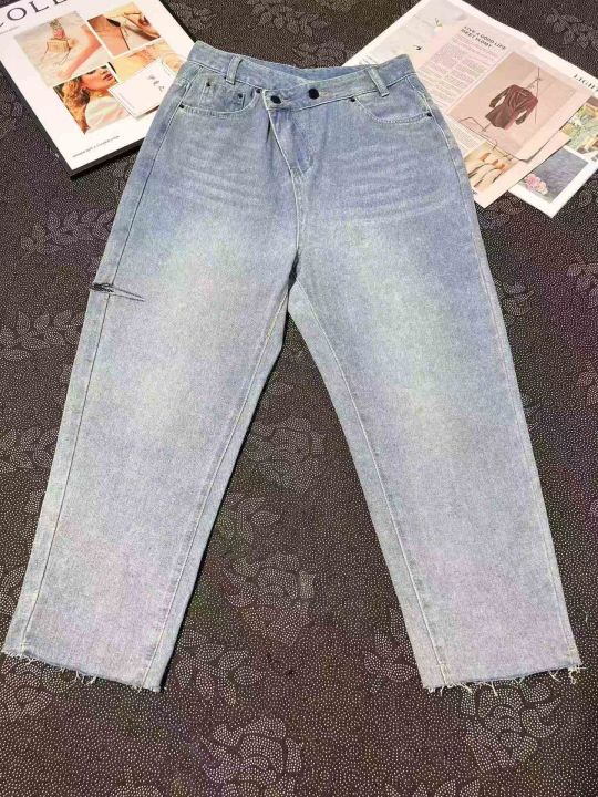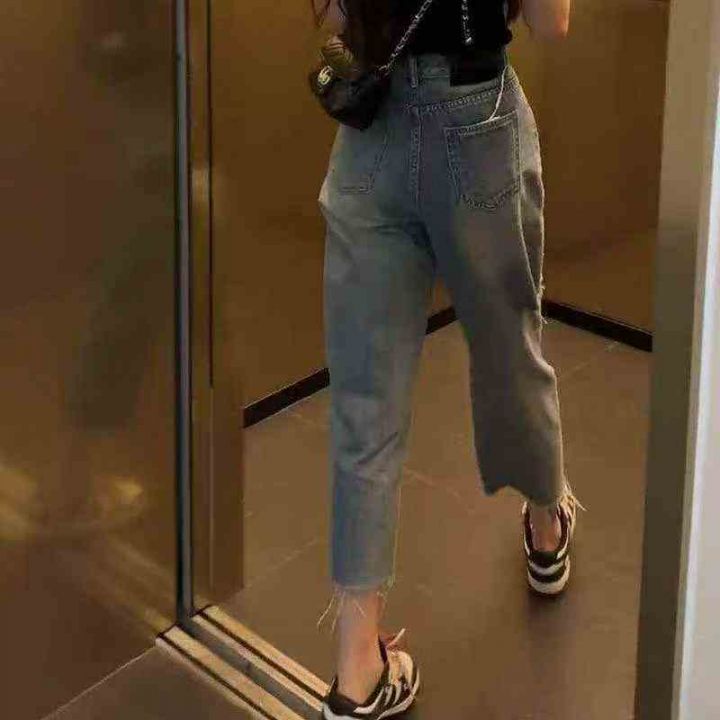 破洞显瘦毛边九分牛仔裤 169件,全清11.8元,码数:S到XXL,正品独立包装,每条带有原吊牌,夏季薄款破洞老爹牛仔裤女复古高腰显瘦直筒九分哈伦裤