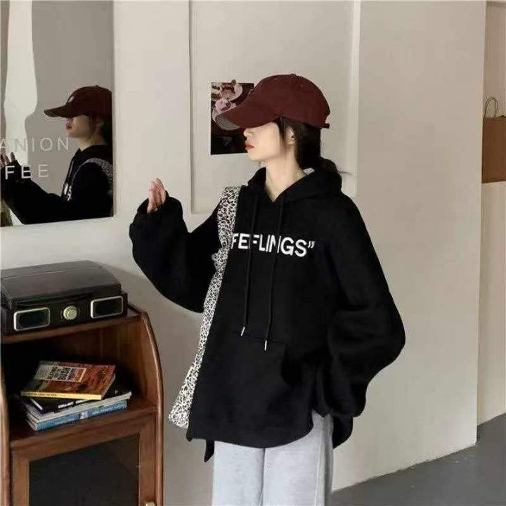 [月亮]:美式潮牌字母刺绣情侣棉质连帽卫衣