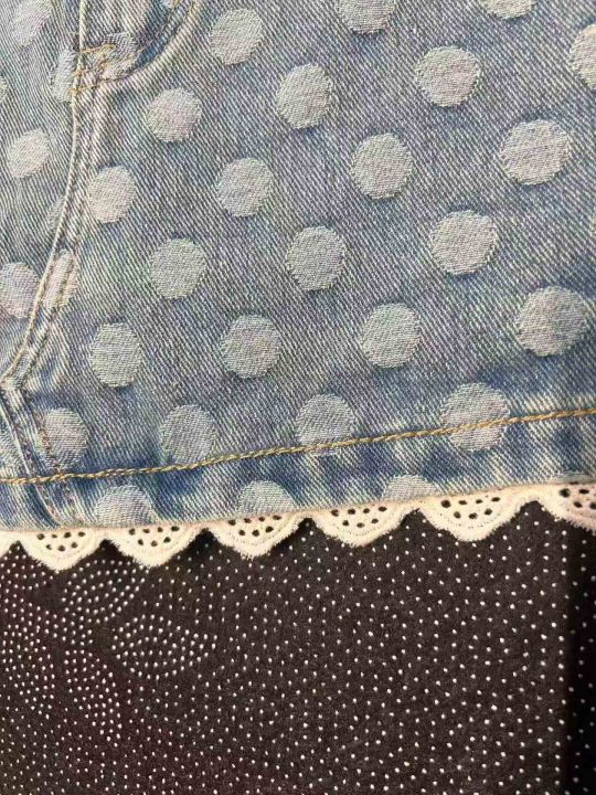 辣妹波点蕾丝花边带内衬牛仔短裙 101件,全清9.8元,...