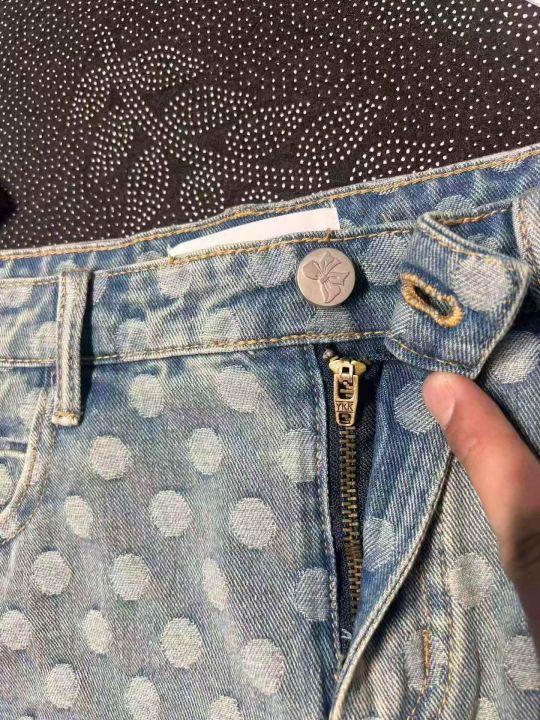 辣妹波点蕾丝花边带内衬牛仔短裙 101件,全清9.8元,...