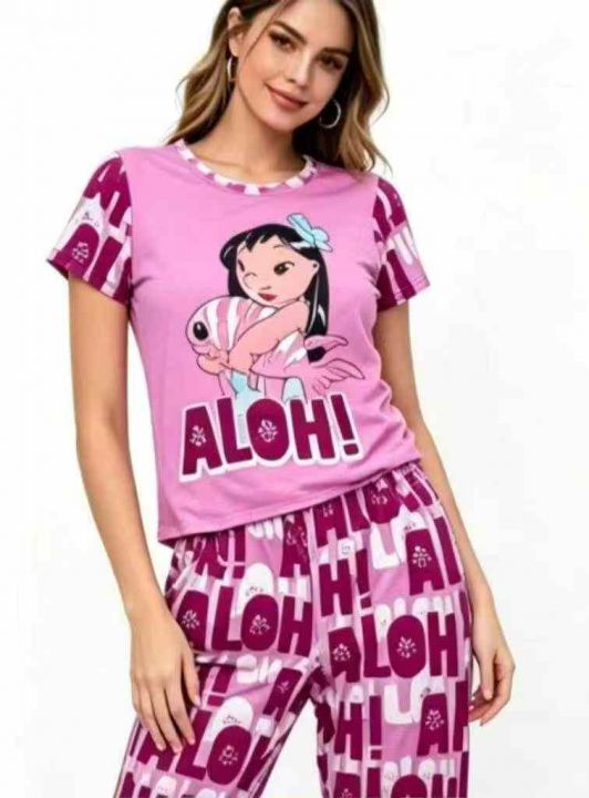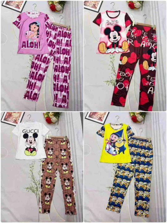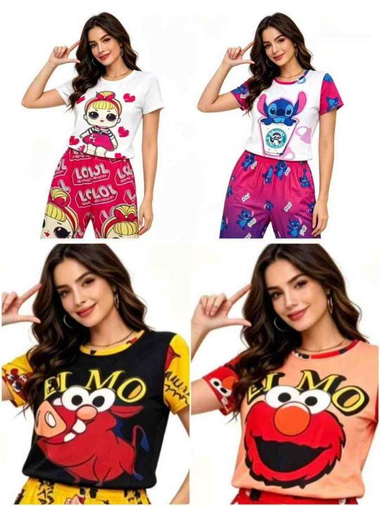电商仓回收292套跨境亚马逊时尚印花休闲短袖长裤套装,码数S-2XL。面料柔软舒适,图案卡通可爱。独立包装。分货➕1