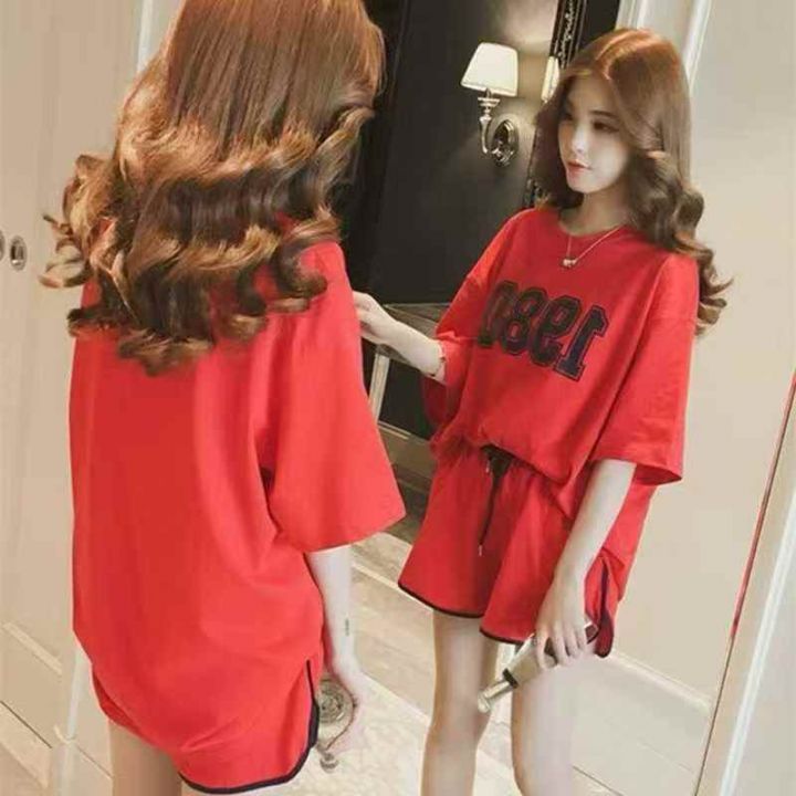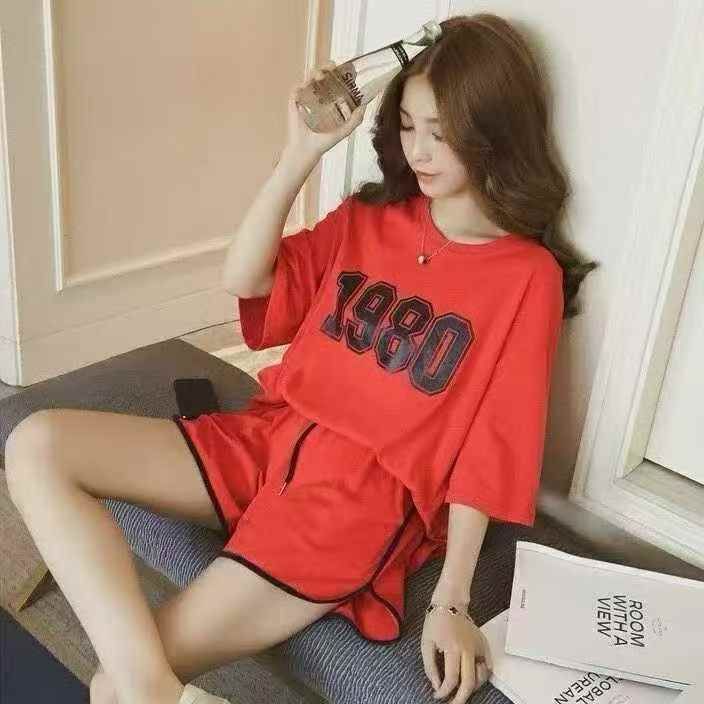 韩版潮流女款宽松运动休闲短裤套装·面料柔软舒适透气...