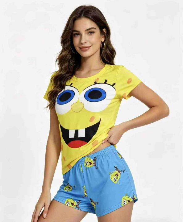 电商仓回收457套跨境独立站爆款休闲女士卡通印花短袖短裤套装,码数S-2XL。面料柔软有弹性,独立包装,分货➕1