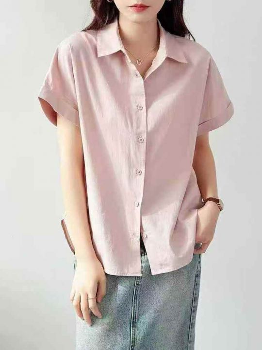 ☕️全棉粉色短袖衬衫女新款夏季白衬衣职业通勤女装穿搭宽松上衣200件全清8.8元,码数S到XL,独立包装,质量很好[庆祝][庆祝][庆祝]