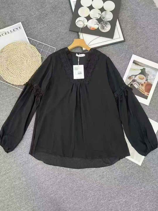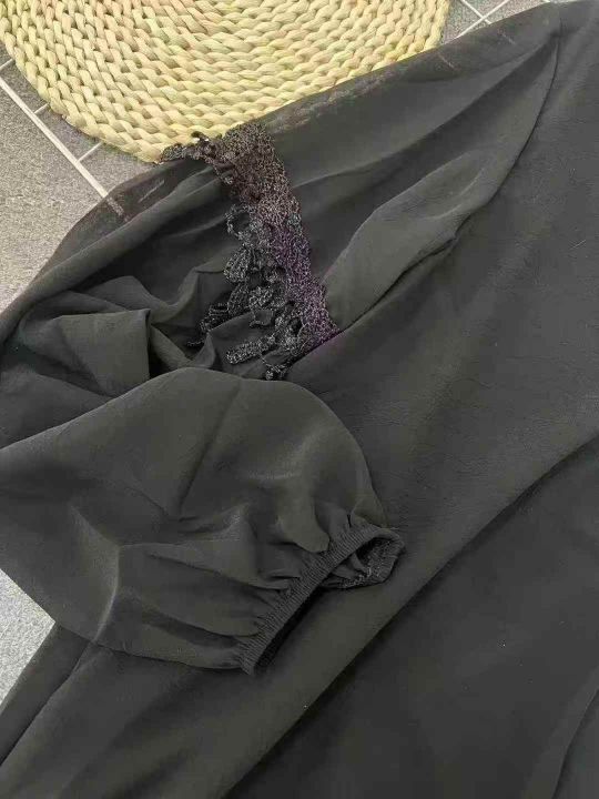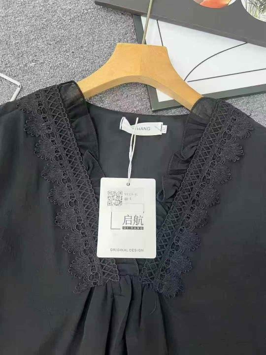 ☕️欧货黑色五分袖洋气雪纺衫宽松v领镂空上衣蕾丝衫女秋夏衬衫小衫300件全清8.8元 分货10元,码数S到XXL,宽松版,面料柔软舒服[庆祝][庆祝][庆祝]