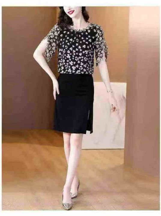 2026夏季新款时尚印花刺绣花边领短袖上衣宽松版 数量:234条 码数:3XL-6xL码 独立包装(货号401#5)
