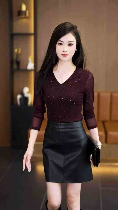 韩版V领钉珠烫钻长袖T恤女款 1913件 1-7码 分货➕1 大货黑色少(货号329#58)
