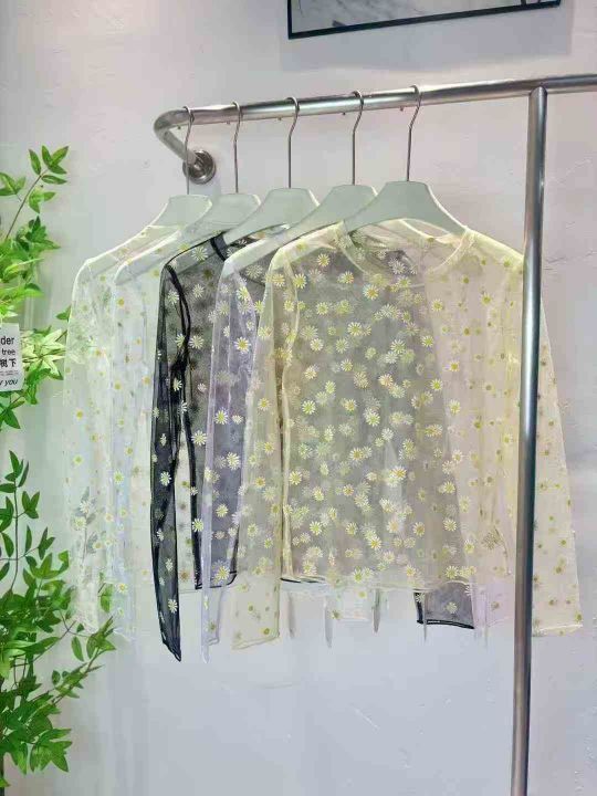 430件小雏菊网纱打底衫蕾丝t恤靓妹款夏季防晒叠穿纱衣上衣长袖内搭体恤潮,质量好零瑕疵,尺码S-3XL,独立拉链包装,全清3.9 不分货