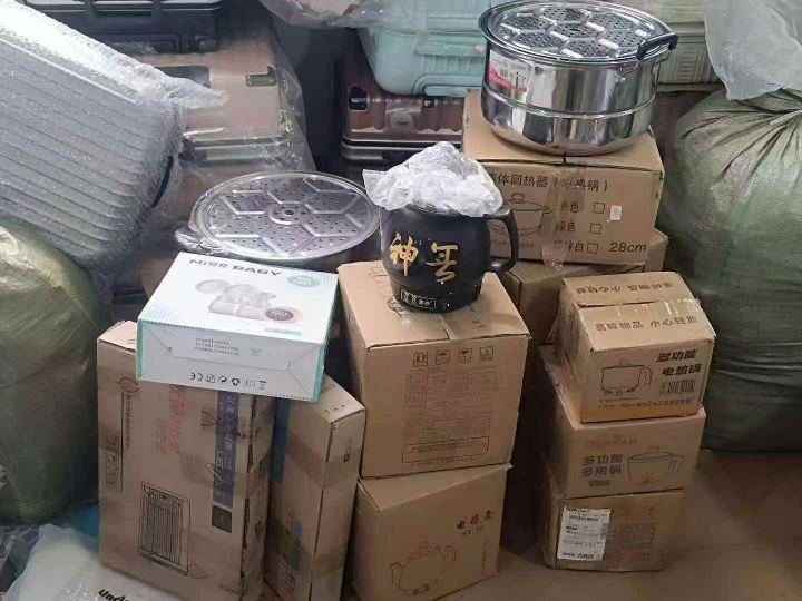 刚刚收回来的百货店,两大面包车拉回来的,有行李箱,便凳,拐杖,凉席,书...
