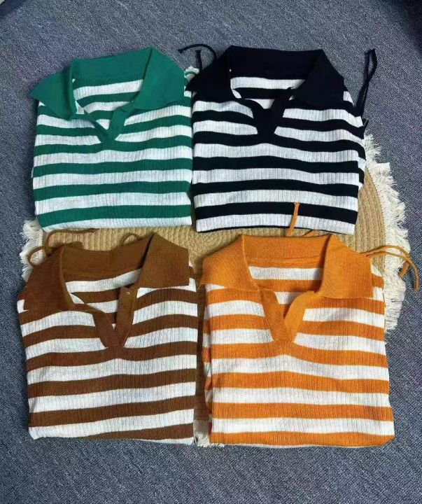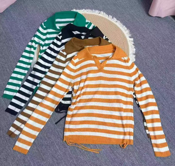 法式高级2025秋装新款韩版翻领条纹抽绳修身打底衫上衣针织衫女,六羊毛面料,独立包装,均码,660件,清8.5,分➕1