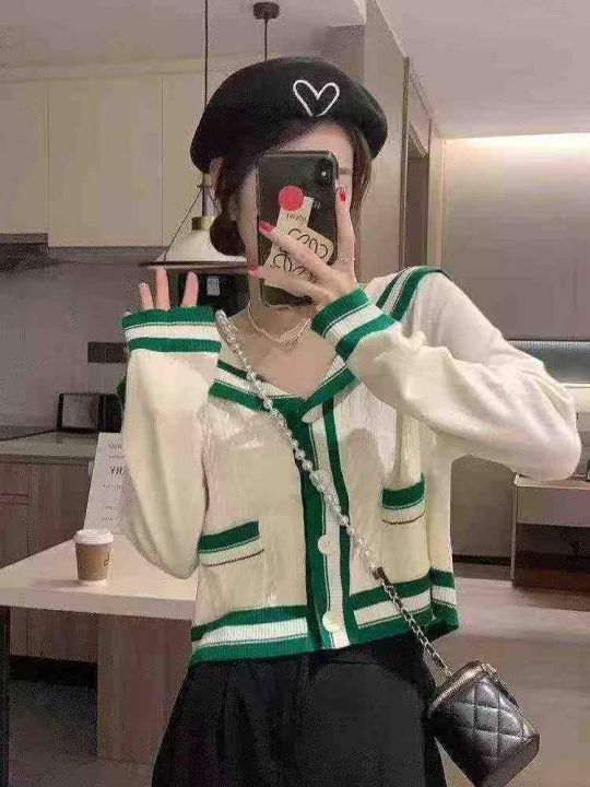上新全清:12.8一件复古海军领撞色拼接宽松百搭开衫毛衣,[爱心]125件左右...