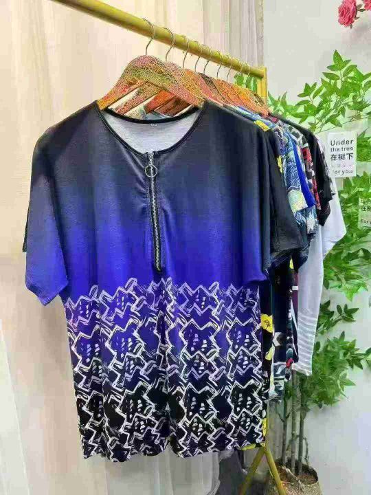 全清价3.881500件,夏季欧美热销wish 独立站女民族风印花棉短袖v领拉链T恤...