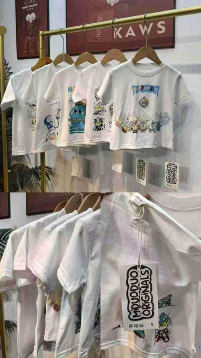 342件米朵朵品牌 高品质童装童趣纯棉圆领T恤上衣 小整款,100%纯棉 包边过肩,五个款 其中四个款亮灯,整首齐码5-7-9-11-13(90-130)独立包装带吊牌。