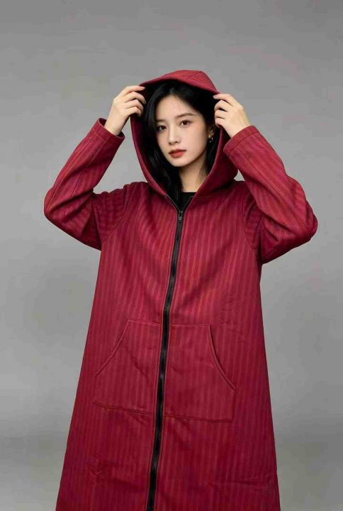 82件连帽拉链长款外套。单款单色,内里加绒,面料品质...