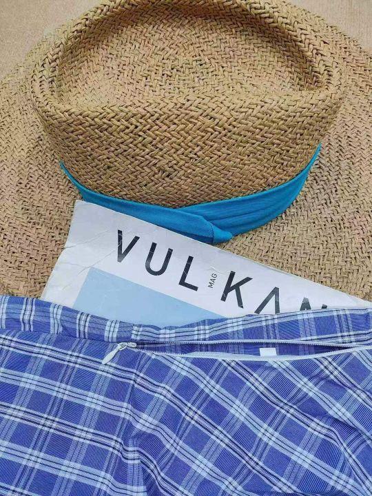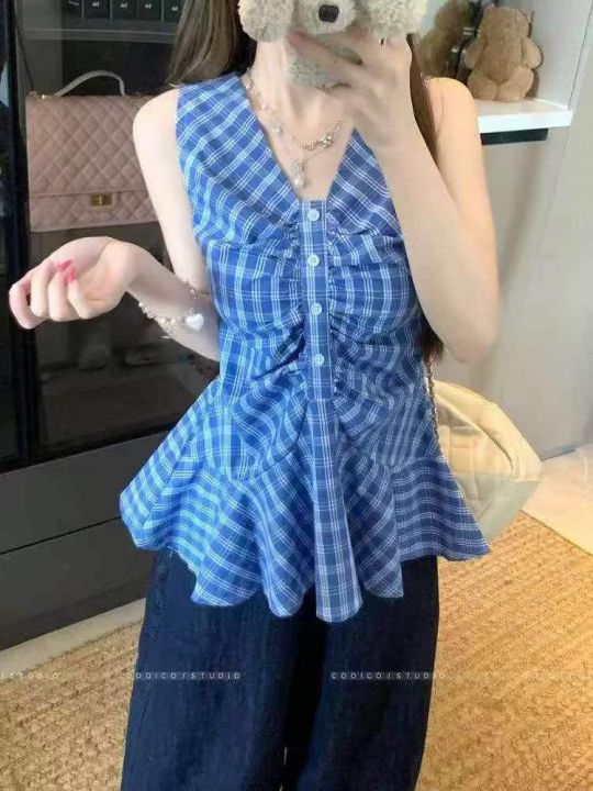 [月亮]:25新款高品韩系复古蓝格辣妹上衣裙