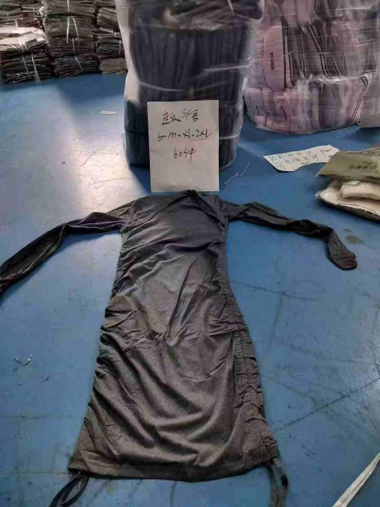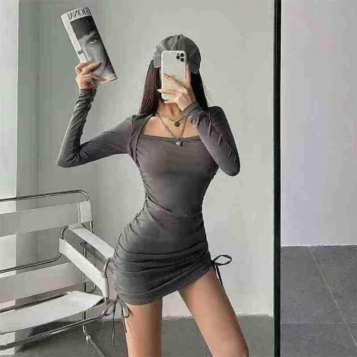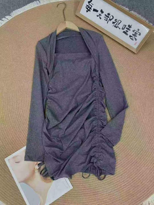 性感修身包肩长袖连衣裙60件7.9,露锁骨,抽绳褶皱,...