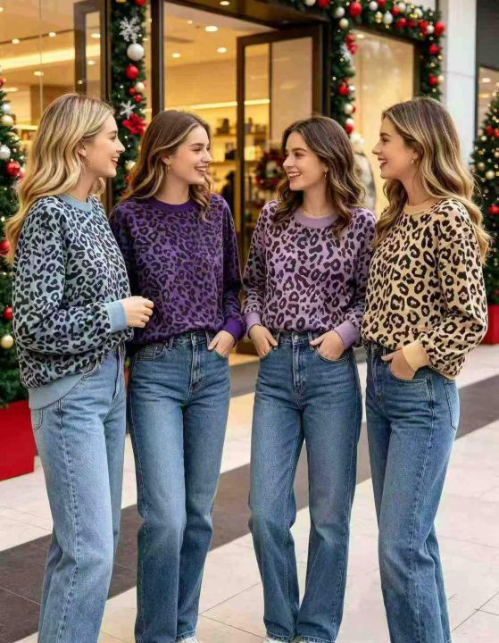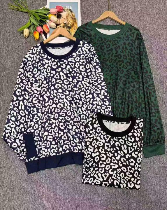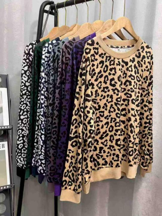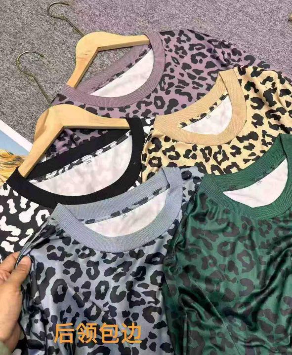 时尚气质豹纹印花撞色圆领长袖打底衫上衣,独立包装,整款多色,码数S-5XL,数量200件