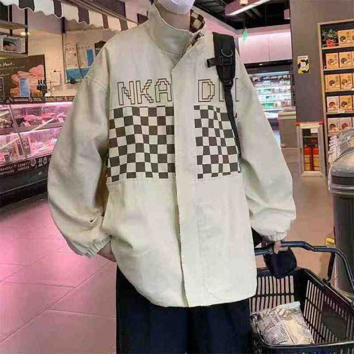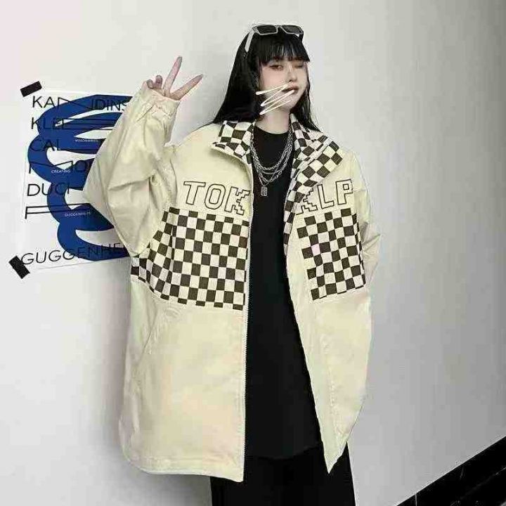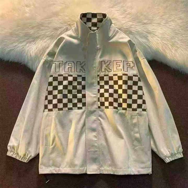 全清12.8大版型宽松外套夹克,男女同款拼色格子外套,...