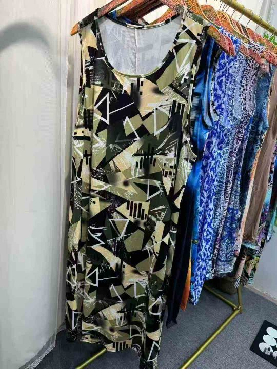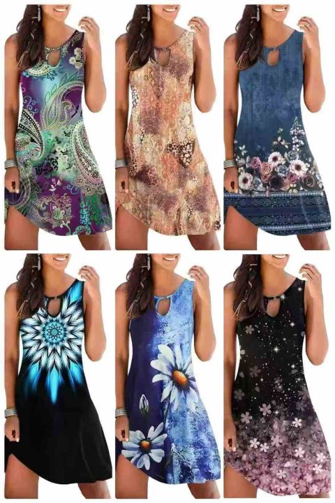 1550件,亚马逊2026女装休闲夏季印花背心无袖连衣裙镂空圆领宽松,独立包装,码数S-5XL,分货➕1,货号001#30