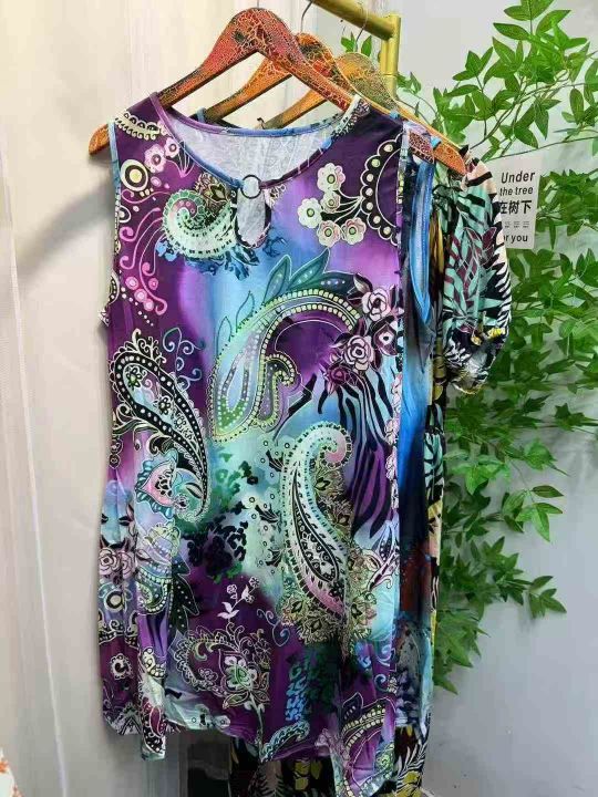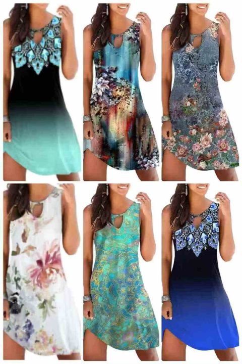 1550件,亚马逊2026女装休闲夏季印花背心无袖连衣裙镂空圆领宽松,独立包装,码数S-5XL,分货➕1,货号001#30